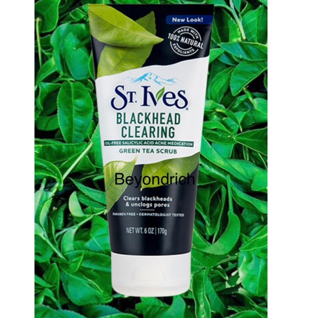 Ives blackhead clearing green tea face scrub natural exfoliants 6oz, 6 pack. Ives blemish control green tea scrub, 1 ounce. From america's #1 scrub brand, this scrub with 100% natural exfoliants to unclog dirt and oil from pores for clear, radiant skin. St ives® blackhead scrub is dermatologist tested and contains 1% salicylic acid to unclog pores & prevent breakouts. Green tea also helps to protect skin from harmful environmental factors and free radicals that are known to age skin.